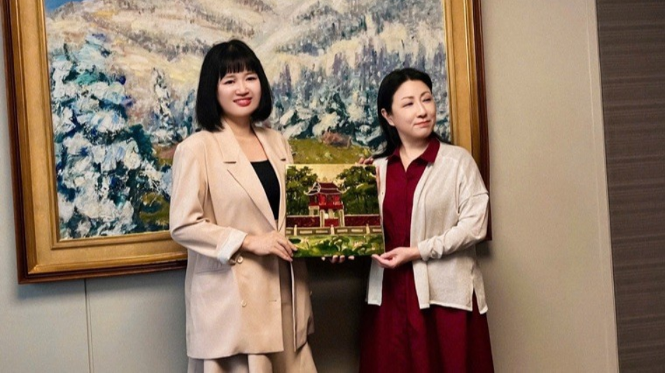 Bà Ngô Quỳnh Hoa – Phó Cục trưởng Cục Phổ biến, giáo dục pháp luật và Trợ giúp pháp lý chụp ảnh lưu niệm với bà Ioro Fujoka – Phó chủ tịch Liên Đoàn Luật sư Nhật Bản.